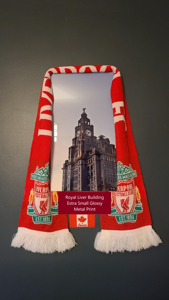 This whole thing started because I wanted to print a photo I took of the Royal Liver Building in Liverpool, England as a keepsake for my time studying abroad at the University of Liverpool. I ordered my photo on the extra small glossy metal print, and hung it up on my wall along with a scarf and my original boarding pass. (A little cheesy, I know.)