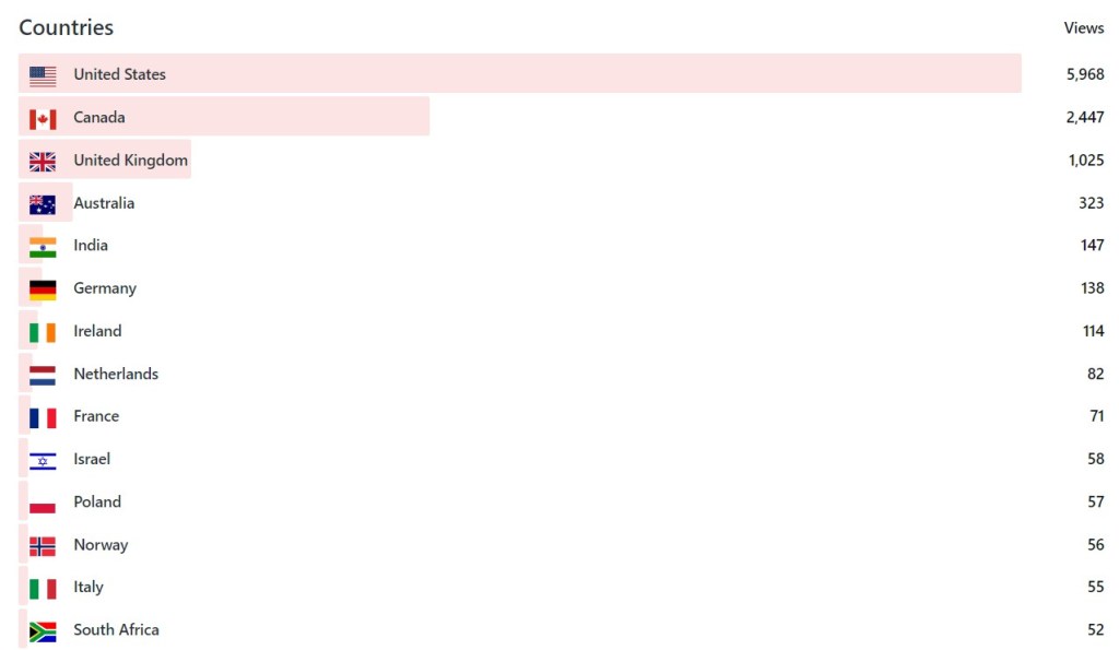 In 2022, Seeking Saudades was viewed in 121 countries and territories from around the world. Here is a map and list of where you’re all from, and a breakdown of each location’s total views.