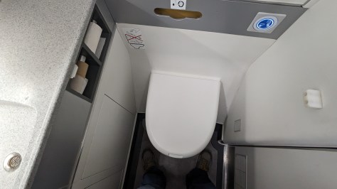 There are two washrooms on on board, one in the front and one in the back. Both were pretty small, but were kept clean and well stocked for the entire flight.