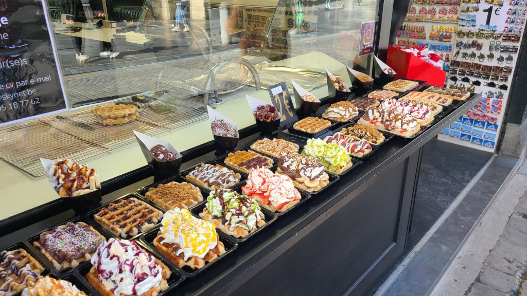 The Grand Palace, Brussels. One the most impressive squares I’ve ever been to.Jardin du Mont des Arts, BrusselsPicturesque storefront in BrusselsYou can’t go to Belgium and NOT get wafflesLes Galeries Royales Saint-Hubert, Brussels